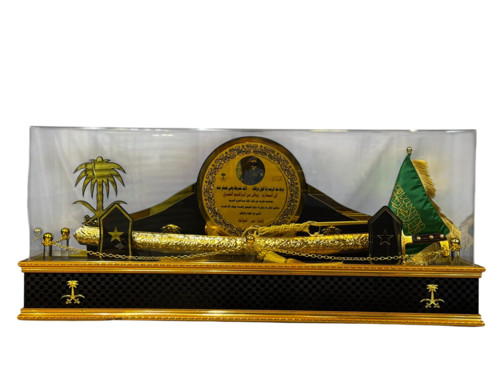 - A royal sword plated in gold with unique engravings that reflect the ancient Arab heritage.